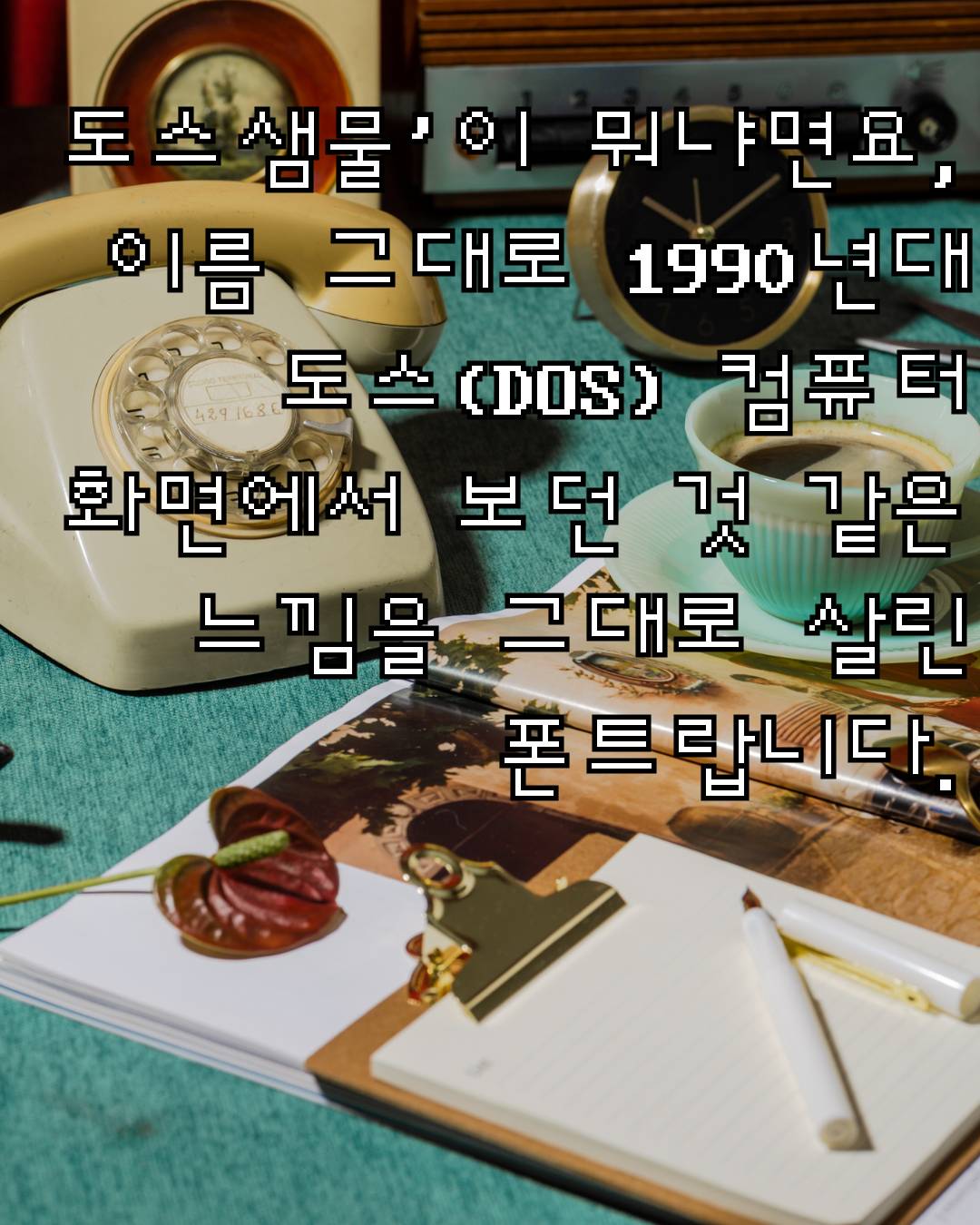 요즘 얼마나 예쁘고 세련된 폰트가 많아요? 그런데도 많은 디자이너나 크리에이터들이 '도스샘물'을 찾습니다. 확실히 그럴만한 이유가 있겠죠?