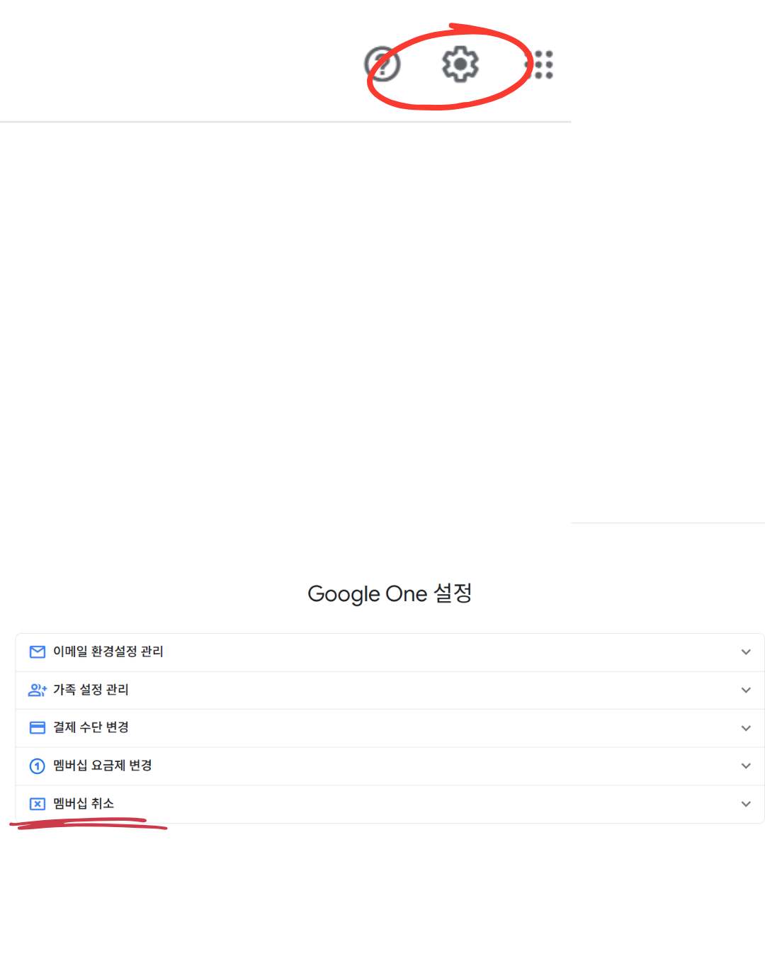 [이미지: 구글 원 홈페이지 우측 상단의 톱니바퀴 설정 아이콘 / ALT: 구글 원 설정 메뉴]